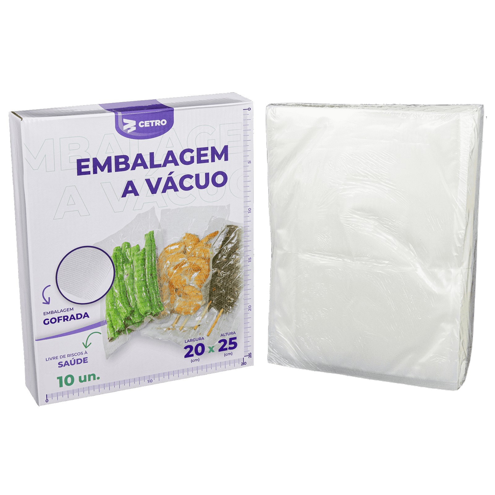Sacos a vácuo gofrados(com ranhuras) Cetro, recomendados para: Seladora a Vácuo Portátil Minivac, Seladora a Vácuo Profissional PROPACK+ CPVS 400 R, e Seladoras de Câmara, e de outras marcas compatíveis.